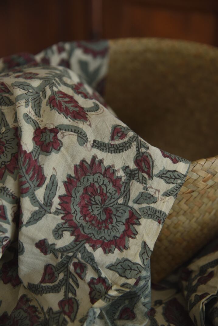 木製ブロックを使用して、天然染料で模様を布にプリントする、インドのラジャスタン州にあるバグルー村で受け継がれている伝統的な染色技法です