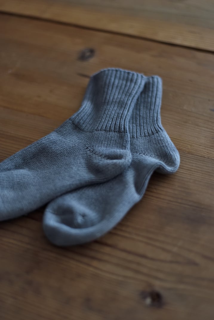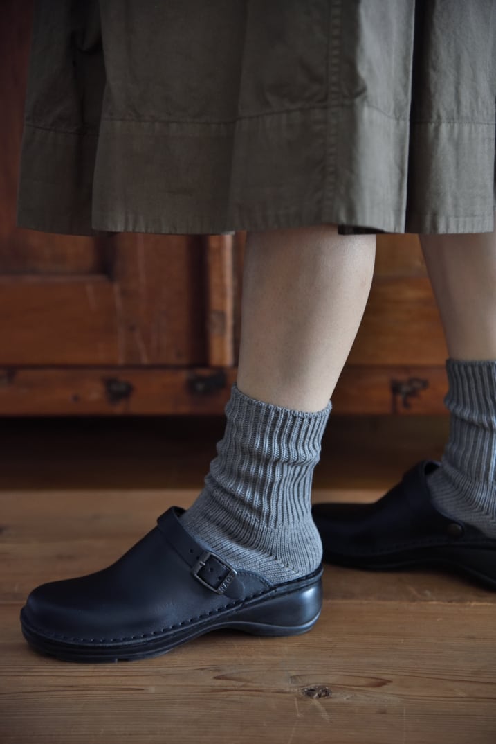 サンダルやスニーカー、ボリューム感のある革靴やブーツ等ともに合うので、一年を通じて履いていただける定番のくつしたです。